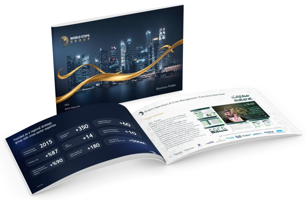 نحن في World Steps نعمل كمنظومة متكاملة من الشركات المتخصصة، نقدّم حلولًا استراتيجية مبنية على الخبرة، التحليل، والتنفيذ الذكي، لنقود أعمالك نحو نمو مستدام وتوسع فعلي في الأسواق.